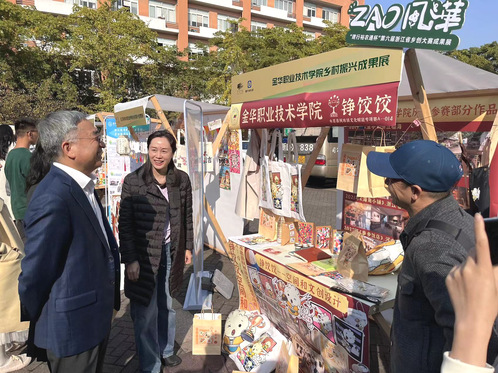 为充分展现历届大赛成果,竞赛组委会特设大赛优秀项目路演及成果展,供参赛高校展出本年和历年乡村振兴大赛(空间和文创)优秀作品展示。本次金职院作品入围参展,参赛师生们认真布展,积极展示学校历年参赛作品,浙江省相关部门领导和兄弟院校负责人参观后,给予充分肯定。