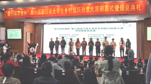 据悉,浙江省大学生乡村振兴创意大赛为省级A类竞赛,聚焦农业农村新发展、新使命,在全国率先探索出真题真做、“政校企村”四位一体助力乡村振兴的浙江模式。本次大赛自2023年5月启动以来,共有87所高校、3008支大学生团队参赛,收到3000多项参赛作品,内容涵盖乡村产业创意、乡村规划设计、乡村人文与公益、未来农业科技等领域。经过专家评委层层评审,大赛角逐出金奖67项、银奖133项、铜奖204项。
