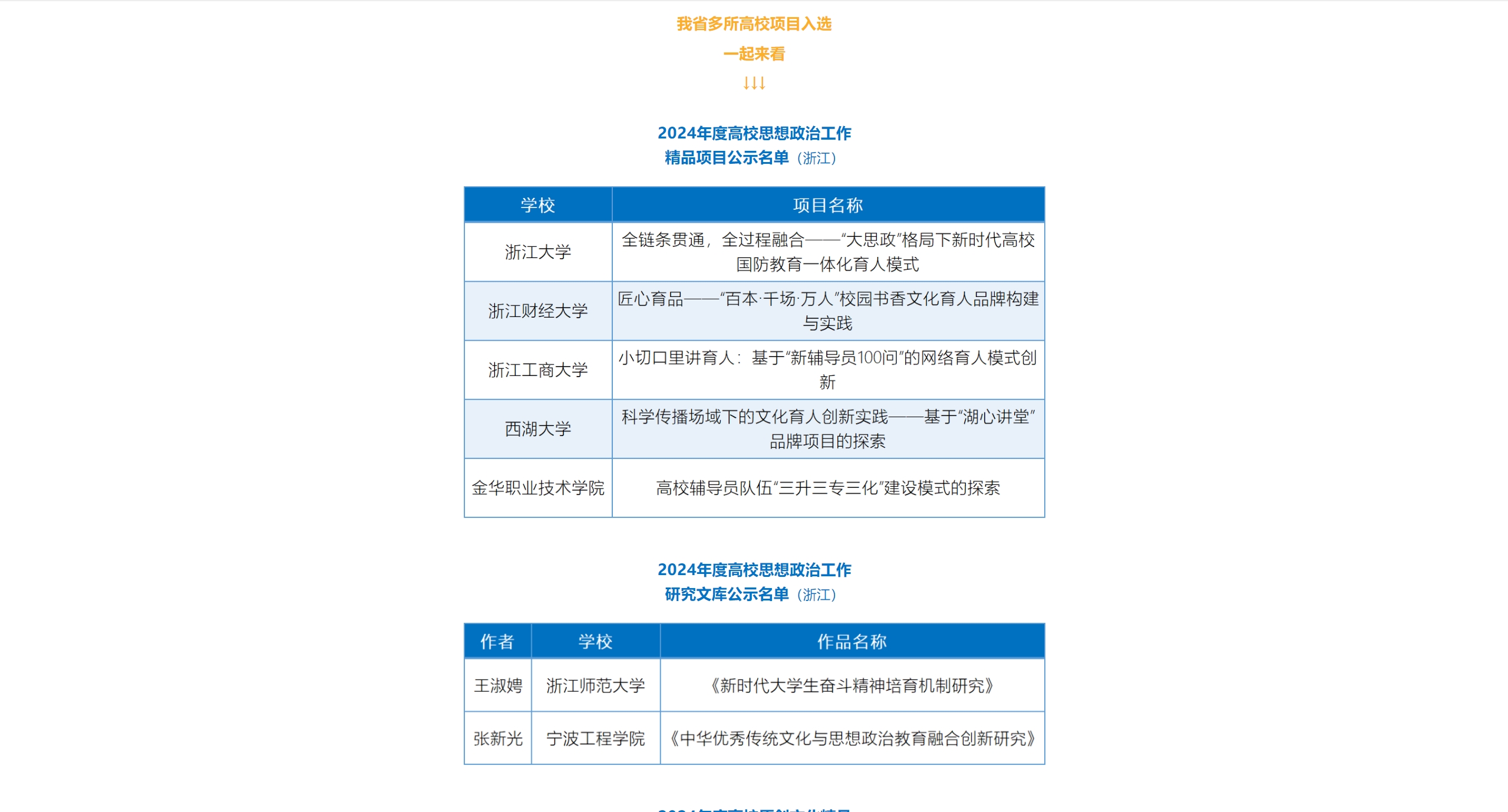 教育之江:浙江35项!教育部公示2024年度高校思想政治工作质量提升综合改革与精品建设项目遴选结果
