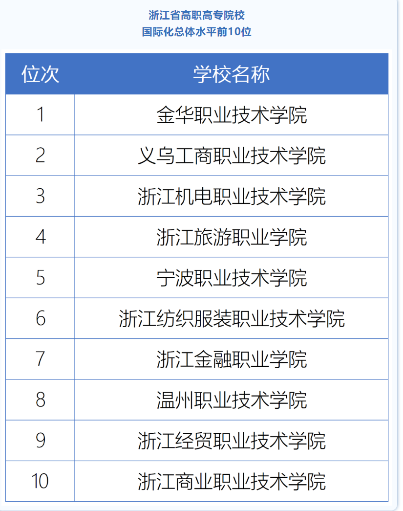 教育之江:浙江省高职高专院校 国际化总体水平前10位
