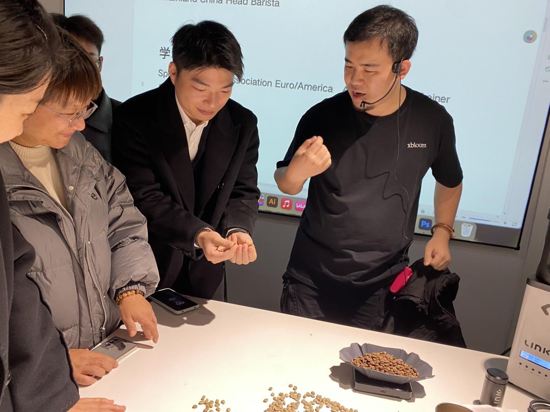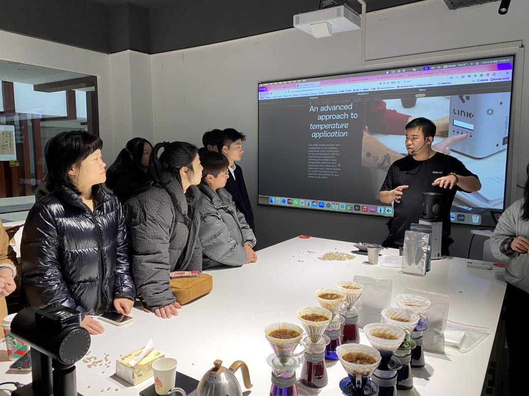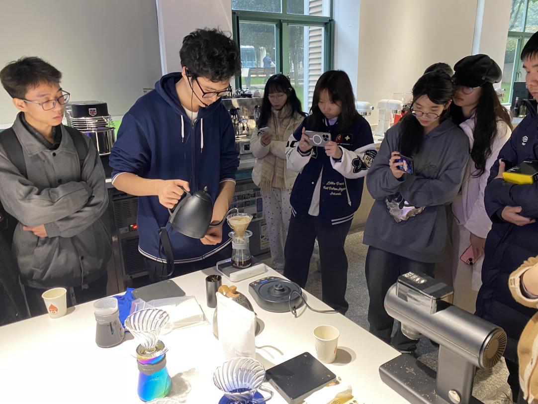 活动中,SCA咖啡师甄纪允带大家近距离观察、触摸咖啡生豆,展示讲解不同产地的咖啡生豆的外观特征、产地特点以及对生豆品质的影响。现场演示了烘焙设备的使用步骤及数字化技术烘焙咖啡的过程,过程中,大家了解了烘焙过程中的温度、时间、气流等关键因素对咖啡豆风味和品质的影响,并深入探讨咖啡烘焙产业对环境的影响,如碳排放等问题,以及可持续性发展在咖啡烘焙中的实践。在咖啡师的指导下,大家分组依次进行不同烘焙度咖啡豆的手冲制作。从浅烘焙到深烘焙,参与者亲身体验不同烘焙度咖啡豆在研磨度、水温、冲泡时间等方面的细微差别,以及这些差别对咖啡风味和口感的影响。整个体验过程充满了挑战和趣味,活动现场充满欢声笑语。现场的参与者纷纷表示通过实践操作和现场学习,对咖啡有了全面而深入的了解,感受到手工制作咖啡的独特魅力,从咖啡树的种植到咖啡豆的加工,每一个细节都充满学问。