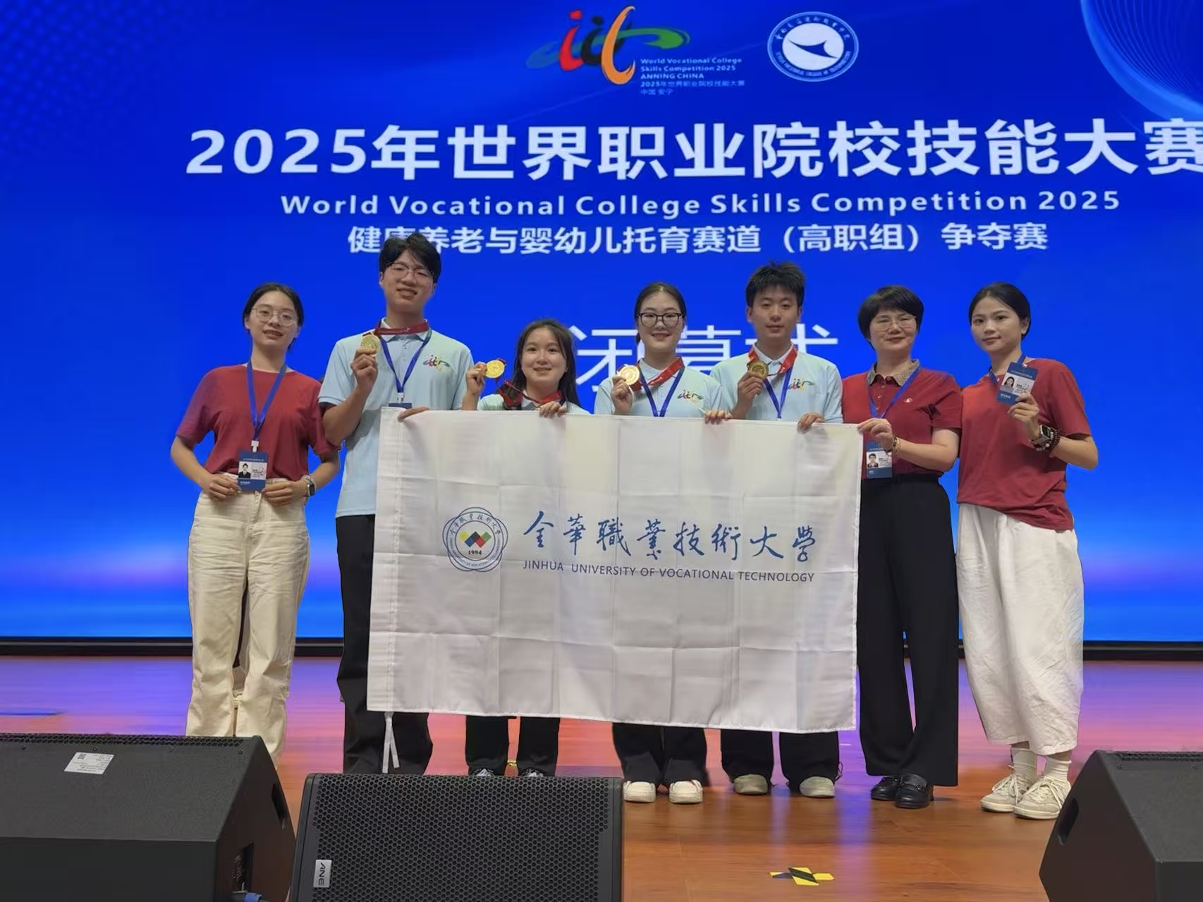 当国赛金奖的喜讯传来,杨健健看着相拥而泣的学生们,眼眶湿润。这一刻,她深深体会到:从省赛二等奖到世赛金奖,这条路上洒满的是团队协作的汗水,是对每个生命的敬畏,更是将照护升华成艺术的执着追求。赛后,骆燕敏同学在训练日记中写道:“这个夏天,我们学会了如何将严谨与温度完美融合。杨老师让我们明白,照护不仅是技术,更是用心灵照亮心灵的艺术。”这支用创新与协作锻造的金牌团队,不仅赢得了荣誉,更找到了照护职业的真谛——在照护他人的过程中,完成自我的成长与超越。