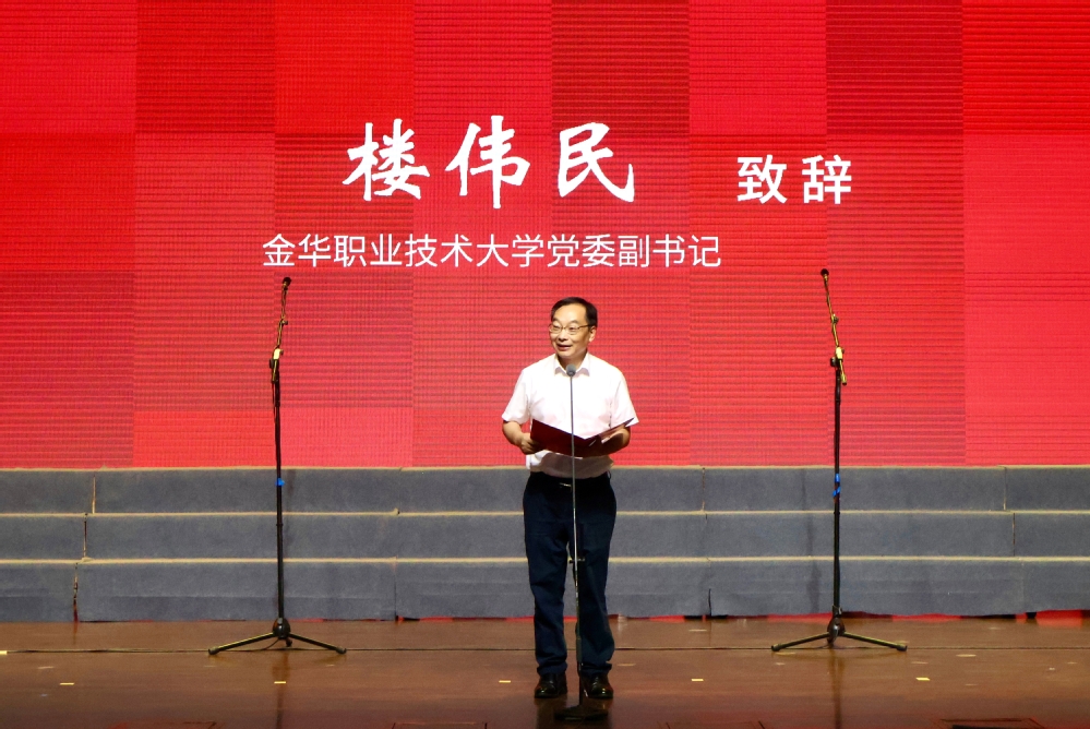 学校党委副书记楼伟民,金华市关工委主任金中梁,市级老领导代表,学校离退休教职工代表、学生代表等观看演出。市委组织副部长、市委老干部局局长钟术清主持活动。