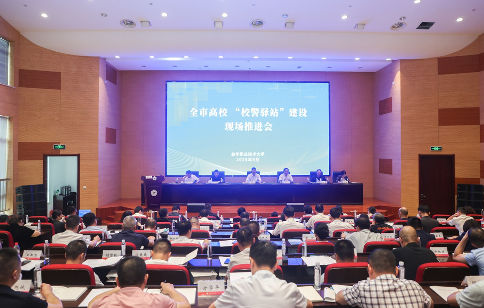 9月29日上午,全市高校“校警驿站”建设现场推进会在金职大召开。会议深入学习贯彻习近平总书记关于教育强国建设、平安中国建设重要指示精神,认真贯彻落实全省高校“校警驿站”建设现场推进会精神,总结推广有关高校“校警驿站”建设工作经验做法,进一步健全完善“平安高校”共建共治共享的综合治理新格局,扎实推进更高水平“平安金华”建设。金华市副市长、市公安局局长徐建役出席并讲话。校党委书记王振洪、校党委副书记劳虓虓,相关职能部门负责人,二级学院党委书记、分管学生工作领导参加。