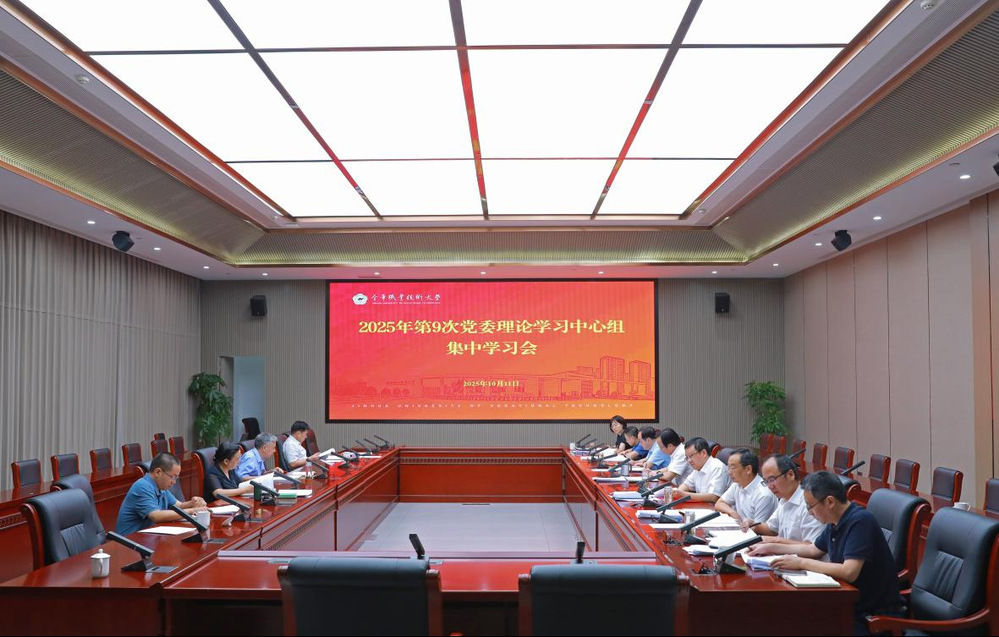 10月11日上午,金职大党委理论学习中心组召开2025年第9次集中学习会,专题学习习近平总书记关于意识形态工作的重要论述,传达学习上级有关文件精神。校党委书记王振洪主持会议并作总结讲话。校领导班子成员参加学习会。