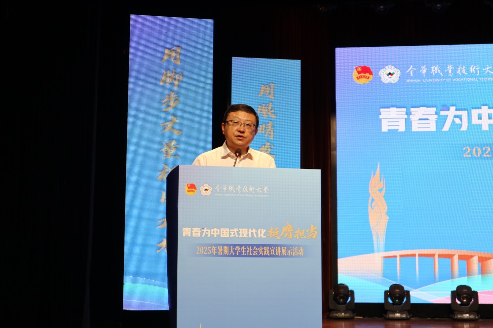 为全面总结学校2025年暑期“三下乡”“双百双进”社会实践成果,充分发挥实践育人在青年思想引领工作中的重要作用,10月11日,金华职业技术大学“青春为中国式现代化挺膺担当”2025年暑期社会实践宣讲展示活动在实验剧场举行。校党委副书记劳虓虓,相关职能部门负责人,各二级学院分管学生工作领导,学工办、团委负责人和青年代表等600余人参加活动。