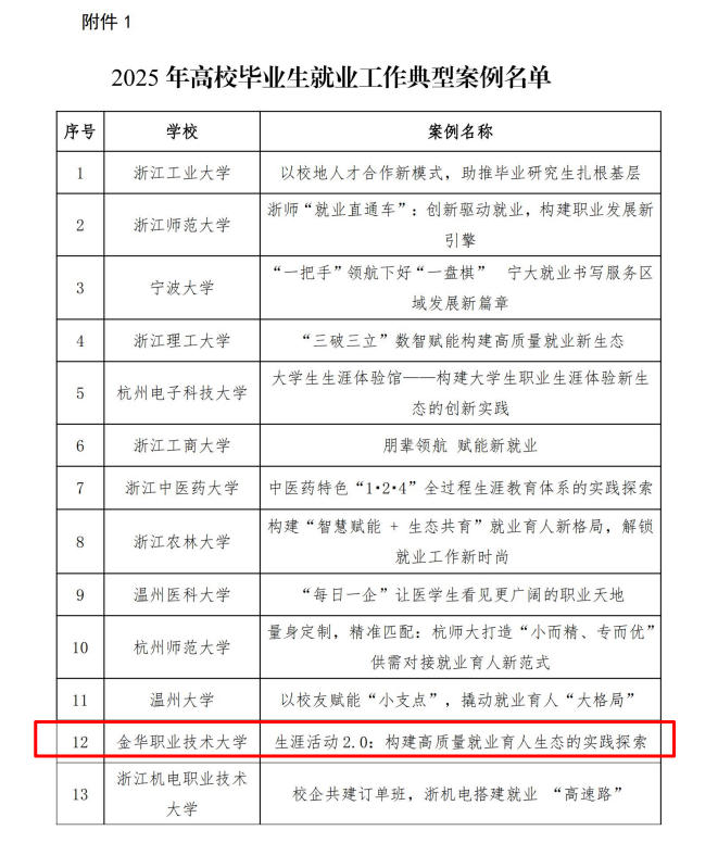 金职大喜获浙江省2025年高校毕业生就业工作典型遴选多项荣誉