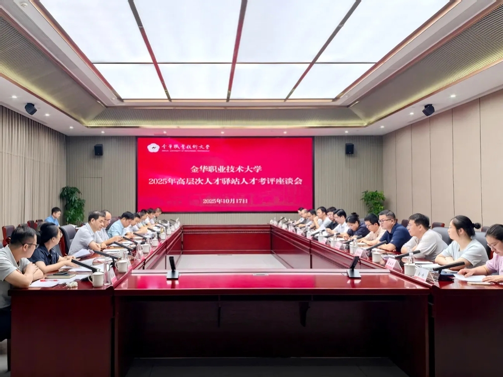 10月17日,金职大召开2025年高层次人才驿站(简称“人才驿站”)考评会。副校长陈海荣,党委委员、组织部部长董晓晨,教务处、人事处、科技处等部门相关负责人,信息工程学院、制药工程学院、农学院、医学院等学院相关负责人;浙江中医药大学金华研究院执行院长寿旗扬,人力资源部负责人路倩楠及10名博士参加考评会。会议由党委委员、人事处处长徐领主持。