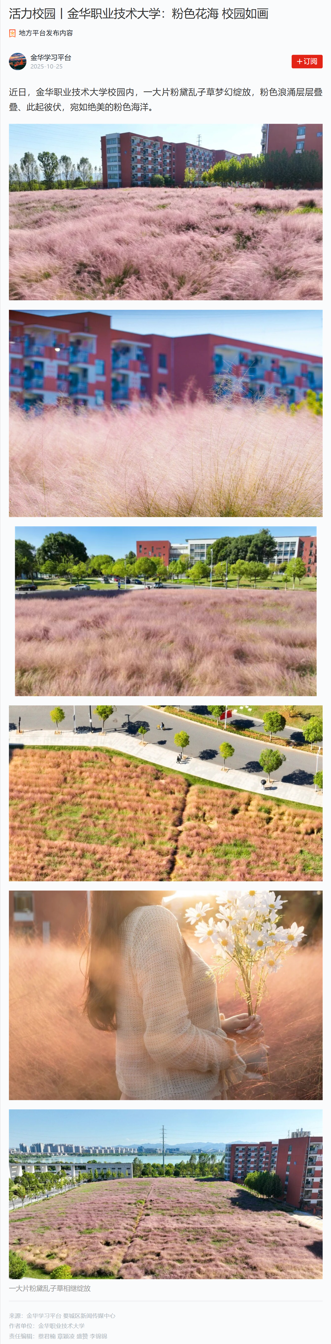 学习强国 金华学习平台:活力校园丨金华职业技术大学:粉色花海 校园如画