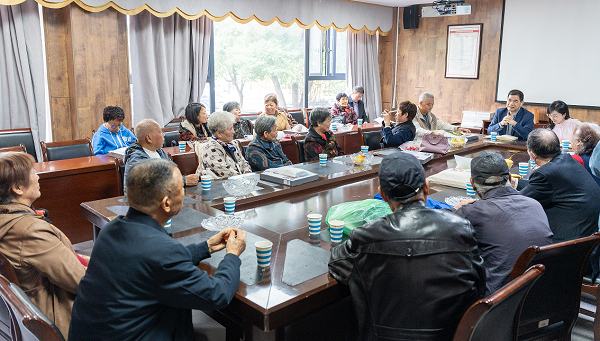 手工制作环节后,座谈会温情开启。院领导与离退休教职工围坐交流,详细介绍了学院职业本科办学、“新双高”建设项目等工作情况,并认真倾听老同志们对学院工作的意见与建议。老同志们忆往昔、谈今朝,分享了退休后的生活点滴,也为学院的未来发展送上真挚祝福。