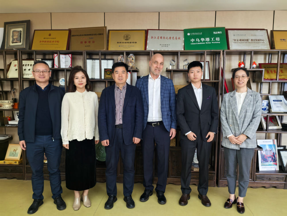 代表团还实地走访了怀卡托国际学院电子创新工坊、科雄双师电子工作坊、远程实境实验室以及商学院教学型实体企业——金华双翼网络科技有限公司。代表团对学校产教融合、赛教融通、理实一体等现代职教理念与具体实践给予了高度的评价。