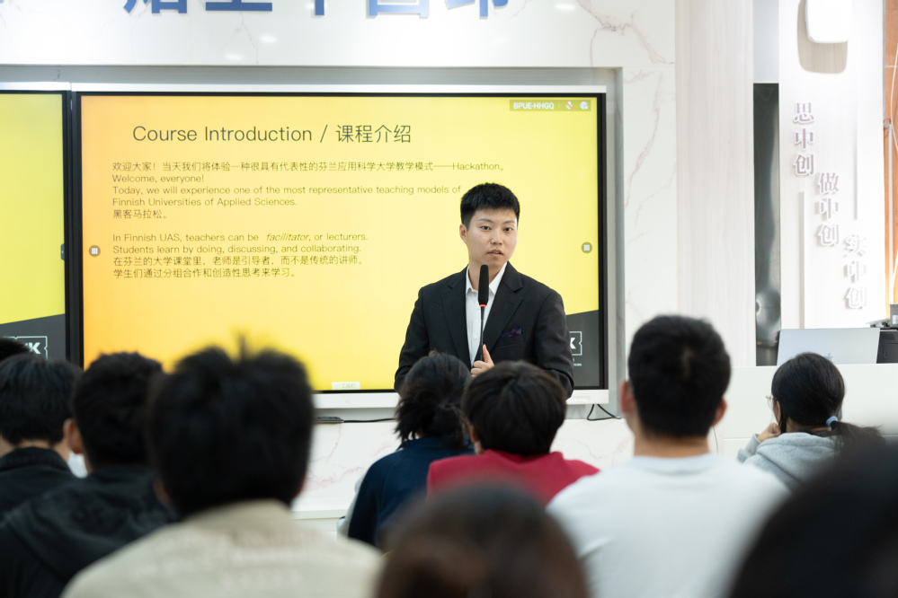 随后,芬兰东南应用科技大学海外项目专员Martin Chen老师为金职大师生带来题为《芬兰应用科学大学独特教学模式体验——Hackathon》的专题体验课。通过互动式、任务驱动的教学形式,中国学生在实践中沉浸式感受芬兰应用技术教育“做中学”的鲜明特色。