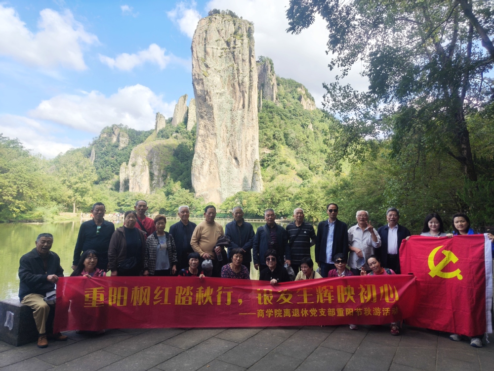 10月29日,正值重阳佳节,商学院离退休党支部组织退休教师赴缙云仙都风景区开展秋游活动,20余名老教师共赴秋日之约。活动以“银发生辉映初心”为主题,旨在丰富退休教师生活,传递学院关怀,弘扬尊老敬老传统。