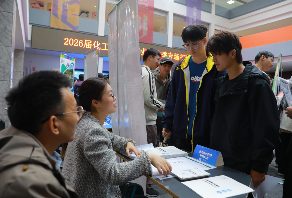 据悉,装备制造、航空交通专场招聘会汇聚了国有企业、民营企业和外资企业等多种类型用人单位,其中上海航天设备制造总厂、浙江欣旺达动力电池有限公司等企业备受学生关注,涵盖了航空工程学院和智能智造学院的近千名应届毕业生,提供了机械类、电气类、材料类等上千个技术岗位,与学院各专业培养目标高度适配。化工制药专场招聘会共吸引48家优质企业参与,如普洛药业股份有限公司、杭州远大生物制药有限公司、三江化工有限公司等多家知名企业,岗位涵盖药品生产、质量检测、研发助理、环保技术、医药营销等多个方向,精准对接毕业生多元求职需求,累计提供就业岗位800余个,吸引毕业生、在校生620余人参加,学生共投递简历850余份,达成下一步求职意向近300人次。