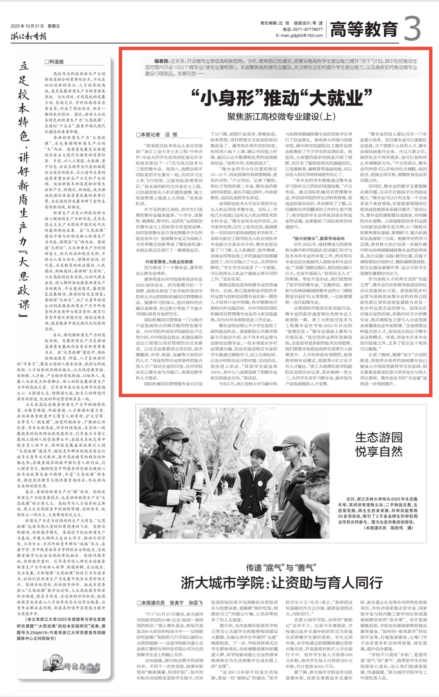 浙江教育报:“小身形”推动“大就业” 聚焦浙江高校微专业建设(上)