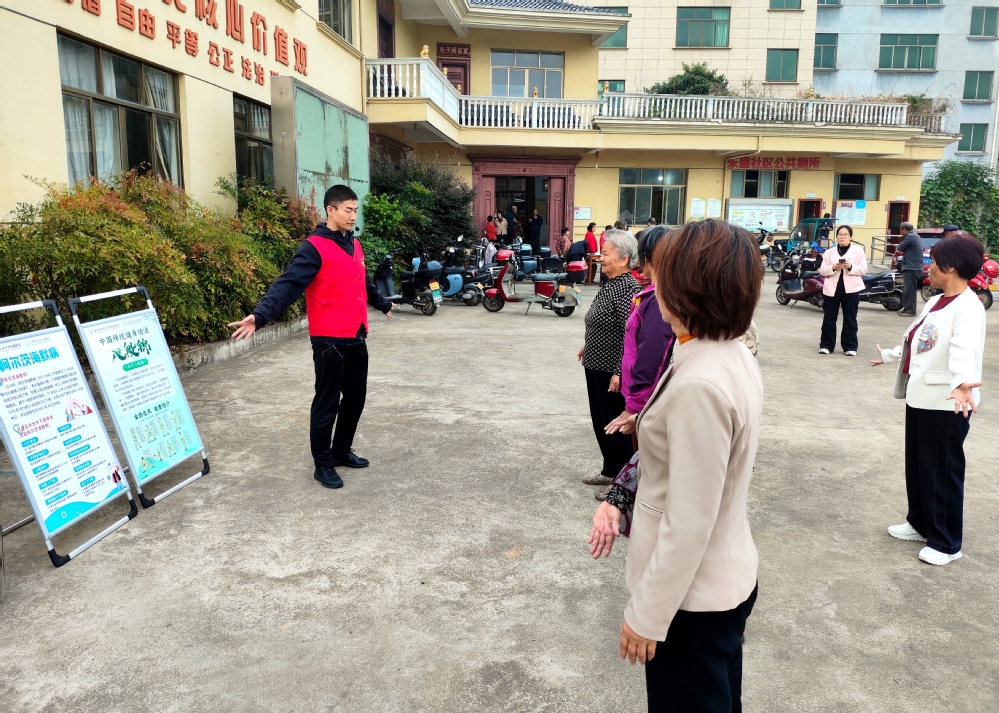 金秋十月,情暖重阳。10月10日至31日是我国第16个“敬老月”,今年的主题是“弘扬孝亲敬老美德 共建老年友好社会”。在重阳佳节到来之际,医学院医路康行党支部积极响应,联合公共基础学院军事与体育党支部前往金华市金东区多湖街道东盛村共同开展八段锦预防阿尔茨海默病健康宣教暨重阳节义诊活动。本次活动还邀请了金职大附属医院内科、外科、中医、康复等各科专家共同参与。