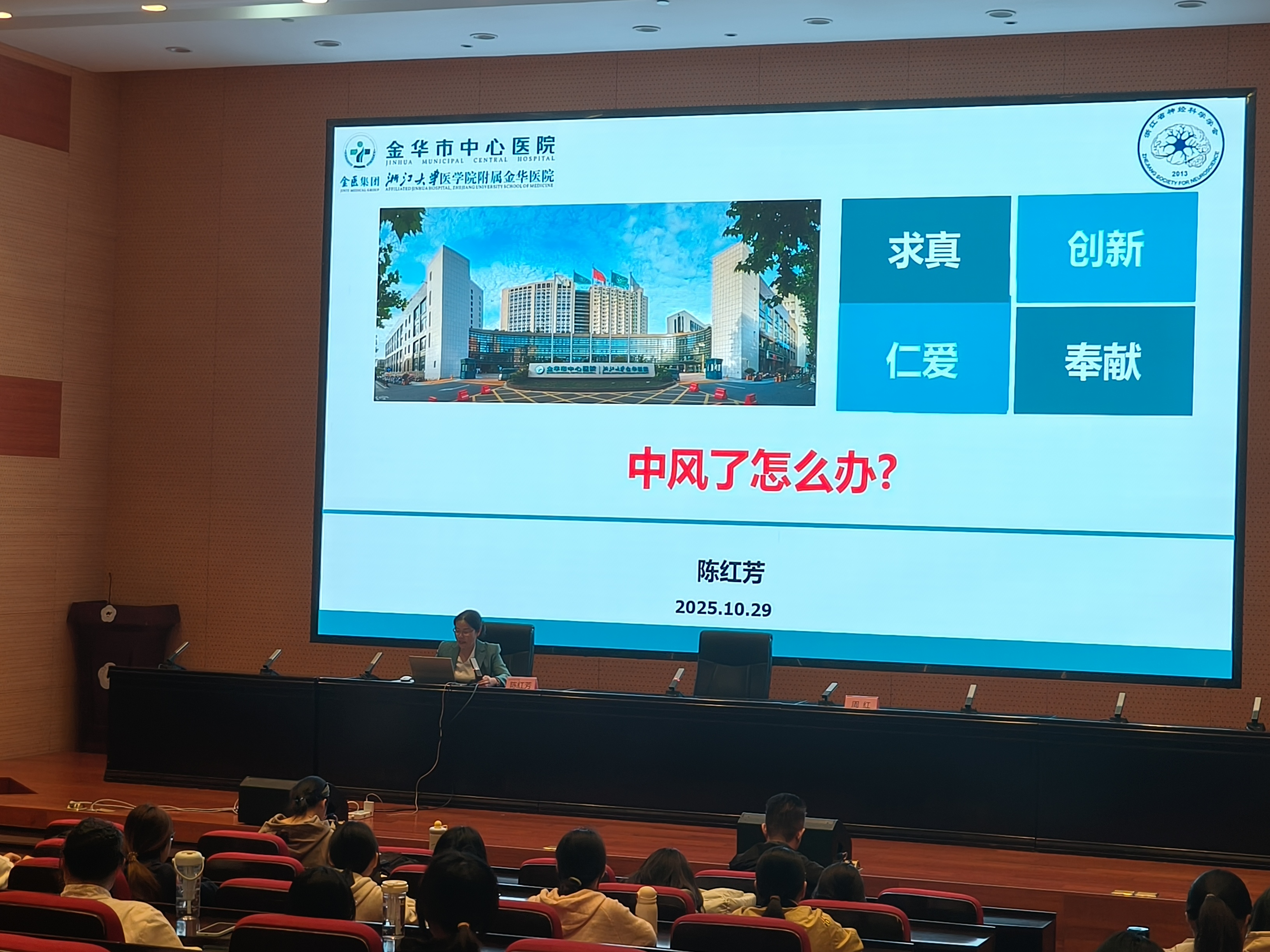 2025年10月29日是第20个“世界卒中日”,今年世界卒中日的主题是“尽早识别,立刻就医”,旨在强调快速识别卒中症状并立即寻求专业医疗帮助的紧迫性。为进一步关爱师生心脑血管健康,提高大众的自我防护意识,医学院医路康行党支部发挥自身专业资源优势,特邀金华市中心医院神经内科科主任、浙江省卒中学会常务理事、浙江省医师协会神经病学分会副会长、金华市医学会神经内科分会主任委员、正高二级主任医师陈红芳为师生们带来一场题为“中风了怎么办?”的专题讲座。
