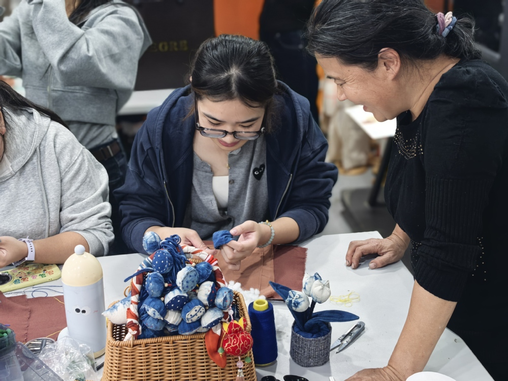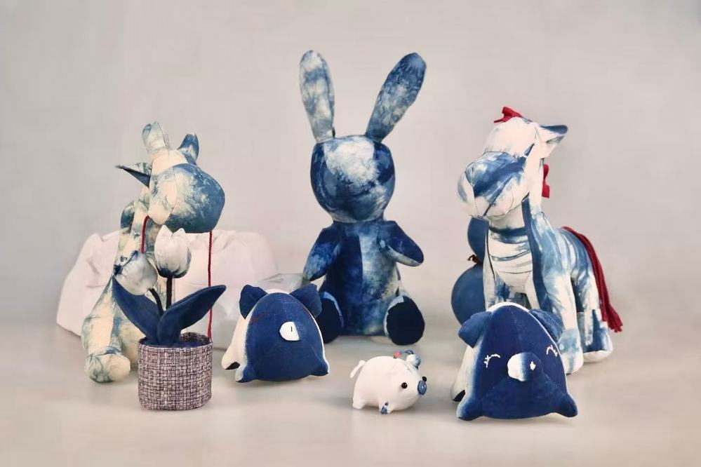 同学们从专业出发,缝制出各类形象的毛绒胚体,并依据设计构思,选用天然植物染料,通过浸染、扎染、型染等传统工艺进行着色,在反复的浸染、晾晒与固色过程中,染料浓度、染制时间与手作力道的细微差别,让每一件作品都呈现出独特个性。