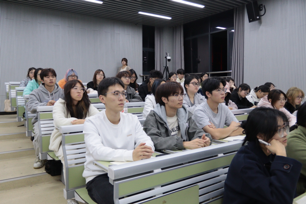 结合设计专业特点,阮老师又进一步引导同学们认真思考“家国情怀如何融入设计实践”,围绕非遗技艺的创新转化、乡村振兴的视觉传播、红色文化的创意表达等,探讨设计服务国家、传承文化的可能路径。在互动中,同学们认真记录、积极提问,就“传统纹样如何承载家国记忆”“乡村振兴设计中的文化传承思路”等话题与阮瑞交流探讨。