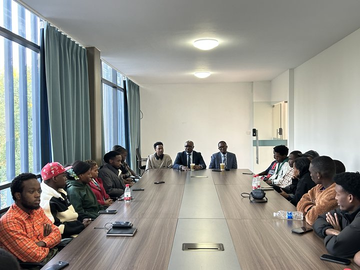 会议期间,Ephrem Musonera一行与未来非洲—中非(卢旺达)应用型人才联合培养项目在华学生座谈,了解学生学习生活情况,鼓励学子深耕专业、搭建中卢文化交流桥梁。此外,还走访了浙江润马光能有限公司,实地考察企业生产运营与人才需求情况,推进校校企三方协同育人。
