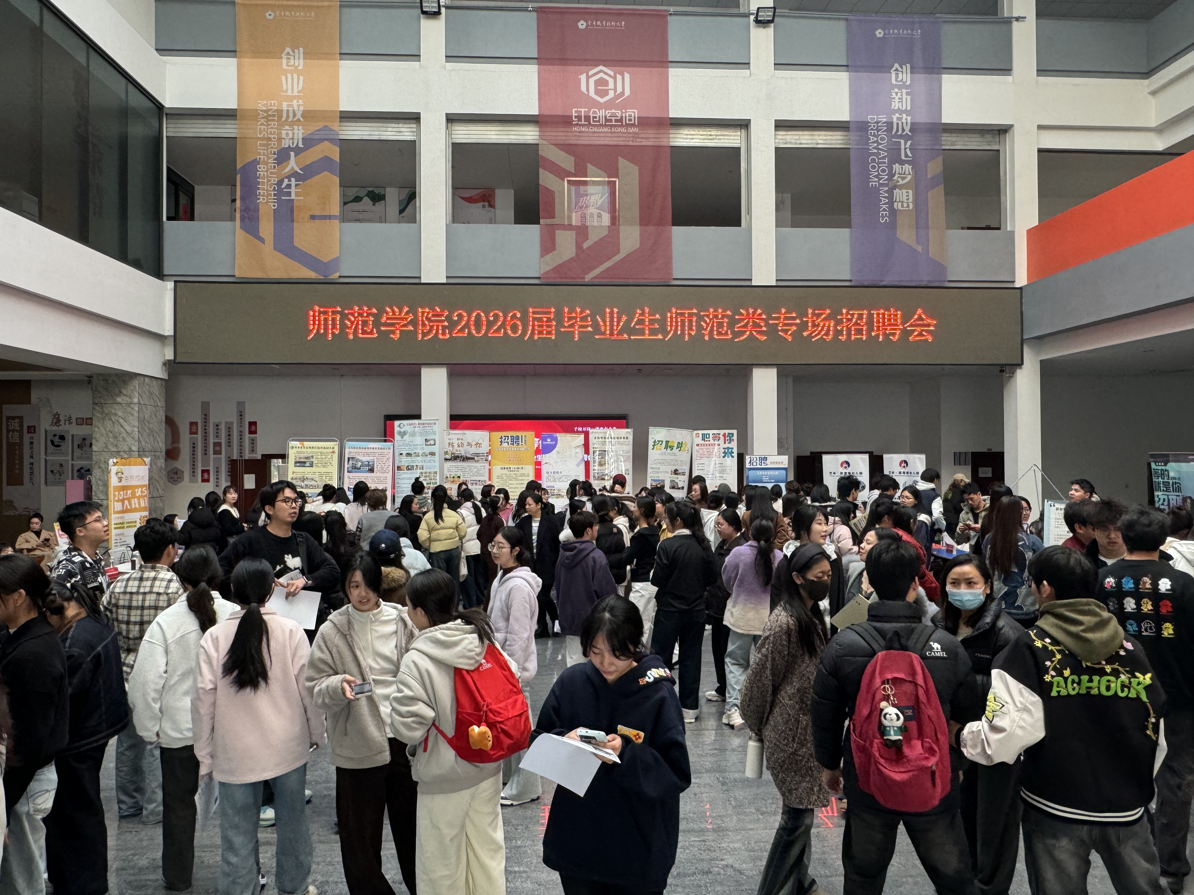 12月7日下午,金华职业技术大学师范学院2026届毕业生师范类专场招聘会于大学生活动中心举办。本次招聘会以“聚力协同、服务地方、促进就业”为主线,吸引了省内39家优质教育企业及相关单位参与,提供就业岗位260余个,现场接待求职毕业生近千人,现场气氛热烈、对接高效。学院领导班子、各专业负责人、班主任及辅导员全员参与,现场指导学生求职,助力学子高质量就业。
