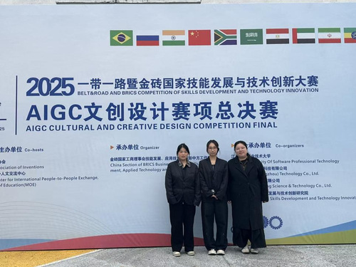 据悉,“一带一路”暨金砖国家技能发展与技术创新大赛是经金砖国家工商理事会批准的国际级一类赛事,AIGC文创设计赛项旨在考察选手利用人工智能生成内容(AIGC)技术解决复杂设计问题的能力。此次获奖是学院推进科技+艺术”跨学科人才培养模式的重要体现。学院将以此为契机,进一步深化AIGC技术在艺术设计教学中的应用,通过“以赛促学、以赛促教、以赛促改”,培养更多具备数字化思维和创新实践能力的高素质技术技能人才,为服务区域文化产业发展贡献金职力量。