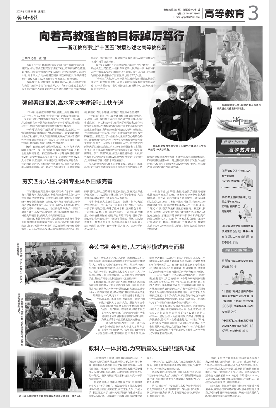 浙江教育报:向着高教强省的目标踔厉笃行 ——浙江教育事业“十四五”发展综述之高等教育篇