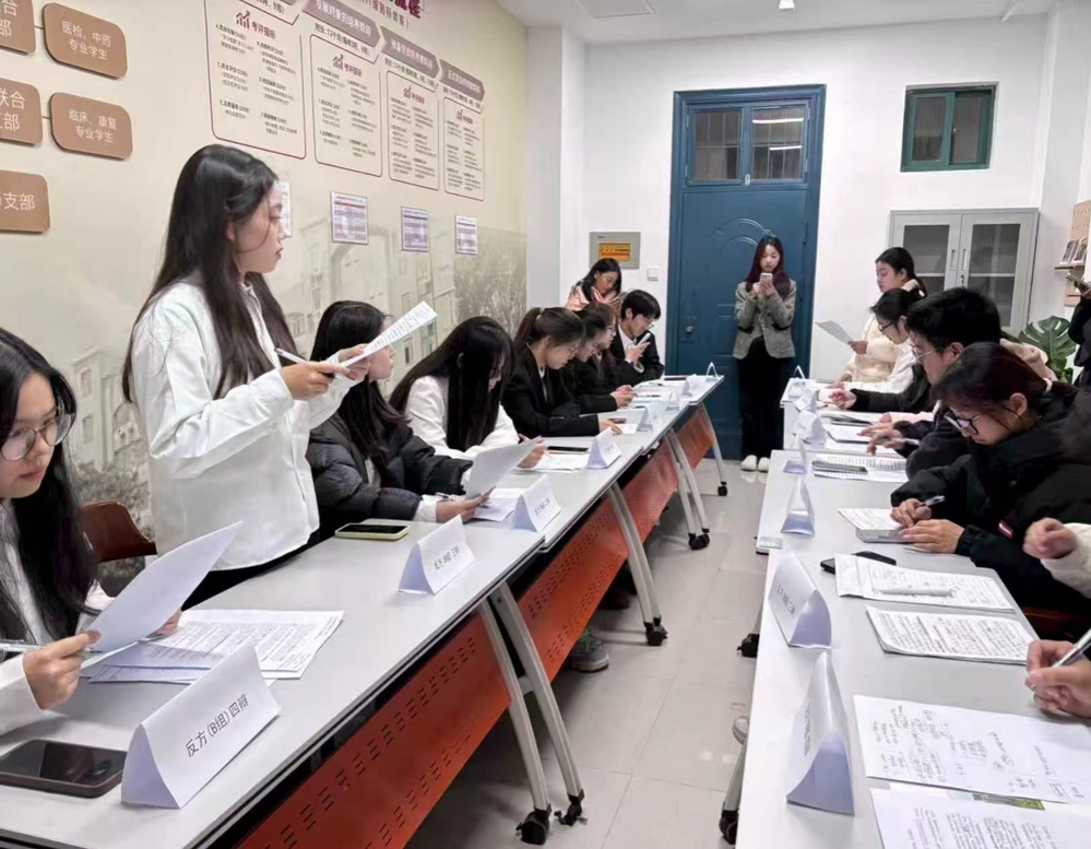 自活动开启以来,辩论赛历经多轮激烈交锋,最终四支队伍脱颖而出,会师决赛。双方围绕“制度是廉洁医风的底线保障”与“教育是廉洁理念的内化根基”两大立场,展开深度论辩。正方援引行业规范与监督案例,力证刚性制度在划界、惩防中的基石作用;反方则从医学誓言与职业精神出发,阐述柔性教育在唤醒初心、筑牢信仰上的深远意义。自由辩论环节,双方逻辑缜密、攻防有度,在制度执行力与教育感染力之间往复交锋,展现出学生扎实的思辨素养与专业的价值追求。