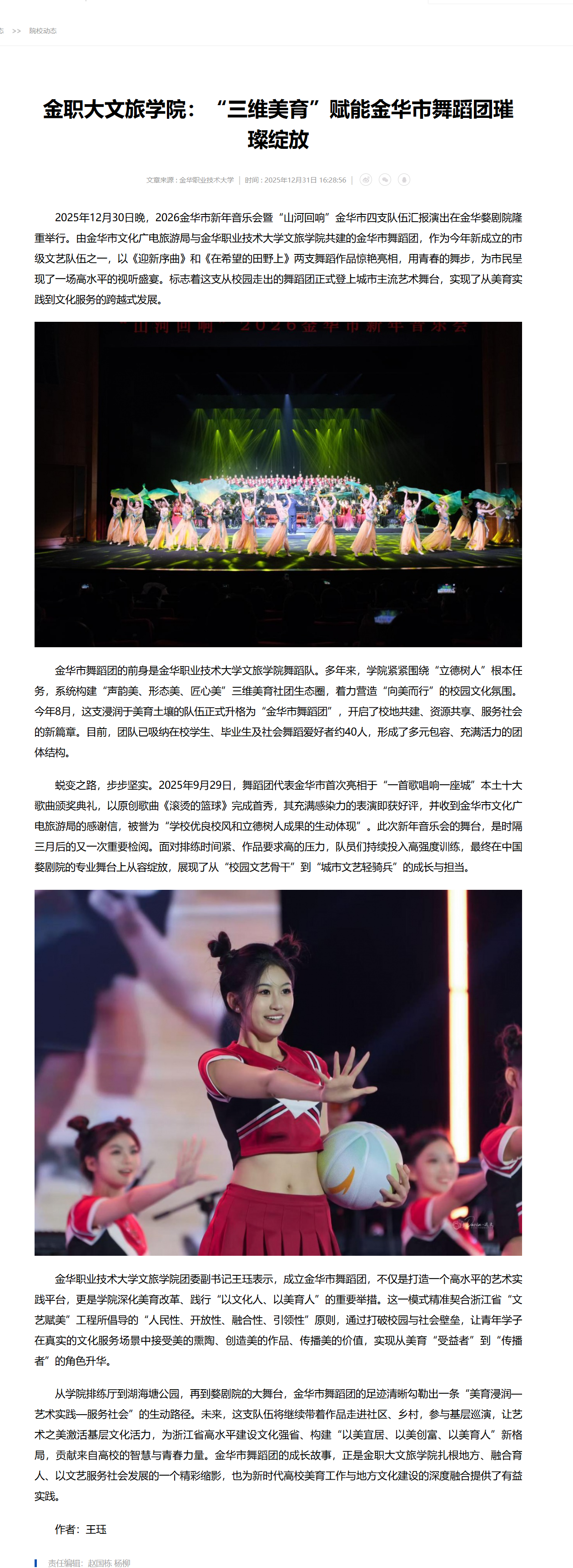 中国教育在线:金职大文旅学院:“三维美育”赋能金华市舞蹈团璀璨绽放