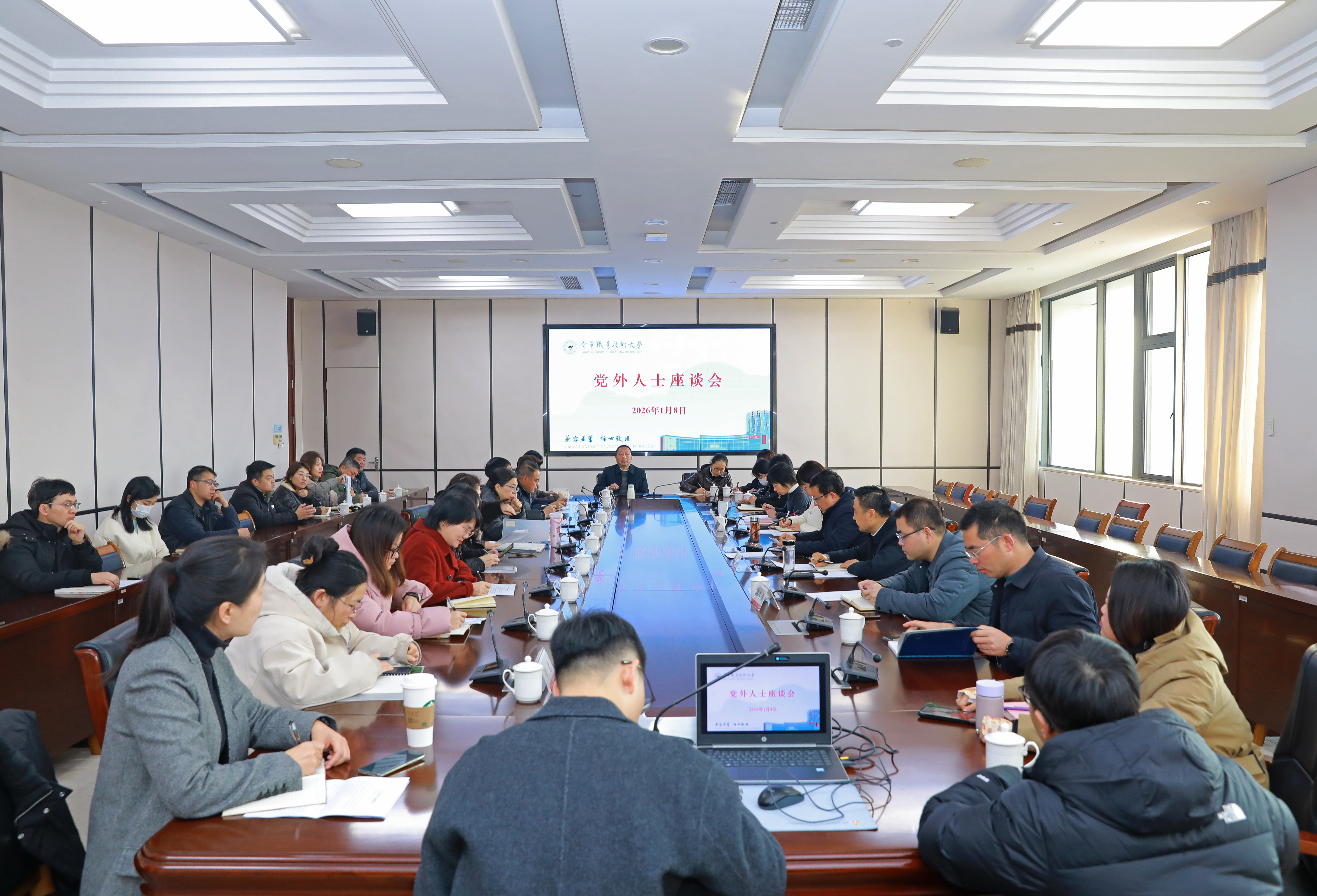 为进一步加强和改进学校党外人士队伍建设,1月8日上午,学校召开党外人士座谈会,围绕党外人士的发展和培养工作听取意见建议,研究探讨思路举措。学校党委副书记、统战部部长劳虓虓出席座谈会并讲话,党委委员、组织部部长董晓晨,党委委员、宣传部部长李文婷,各二级党委书记,组织部、统战部相关人员,以及各民主党派、校知联会代表和教师代表参加会议。