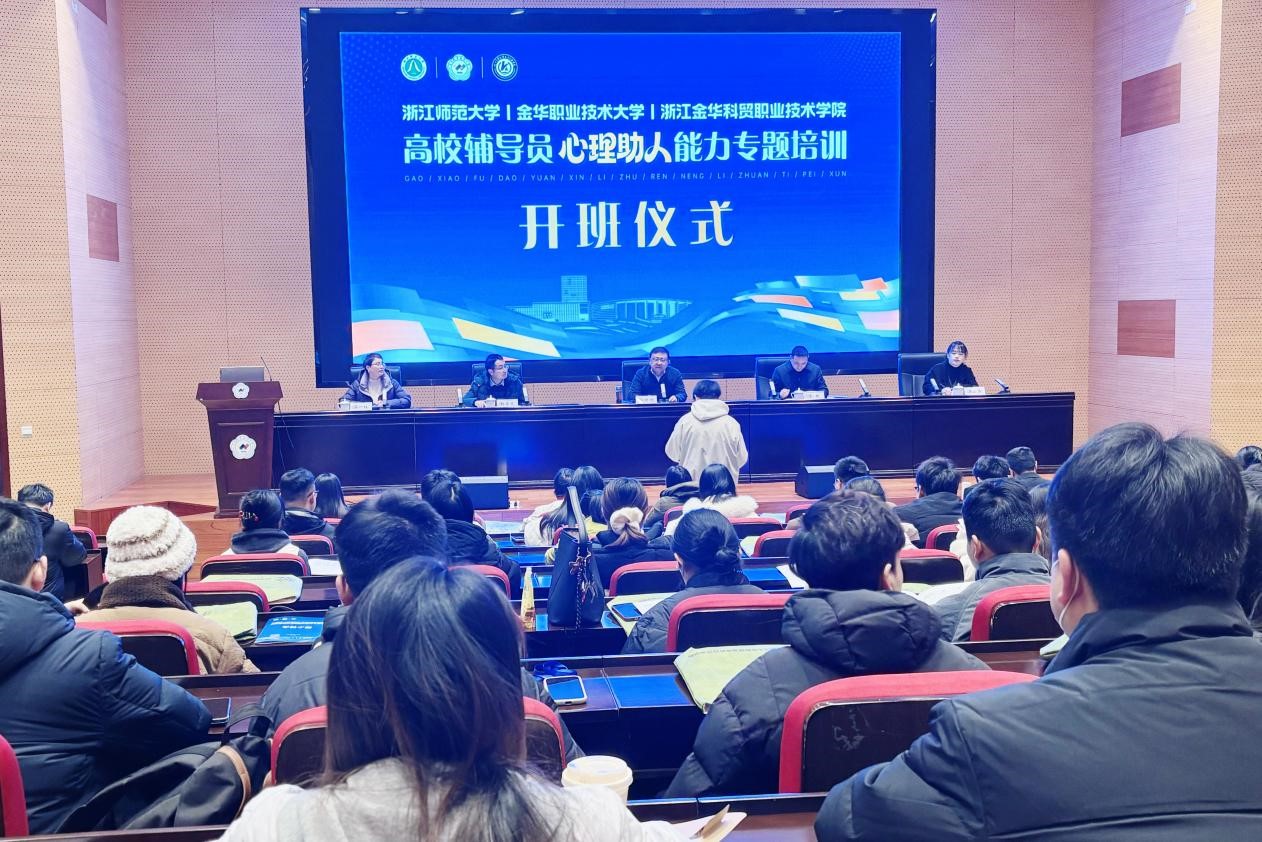 为加强辅导员队伍建设,提升辅导员心理助人专业能力,推进学校心理育人工作高质量发展,1月6日至8日,金华职业技术大学联合浙江师范大学、浙江金华科贸职业技术学院开展辅导员心理助人能力提升专题培训及答辩认证工作,培训由金职大承办。来自三所高校的74名辅导员参加了本次系统培训。