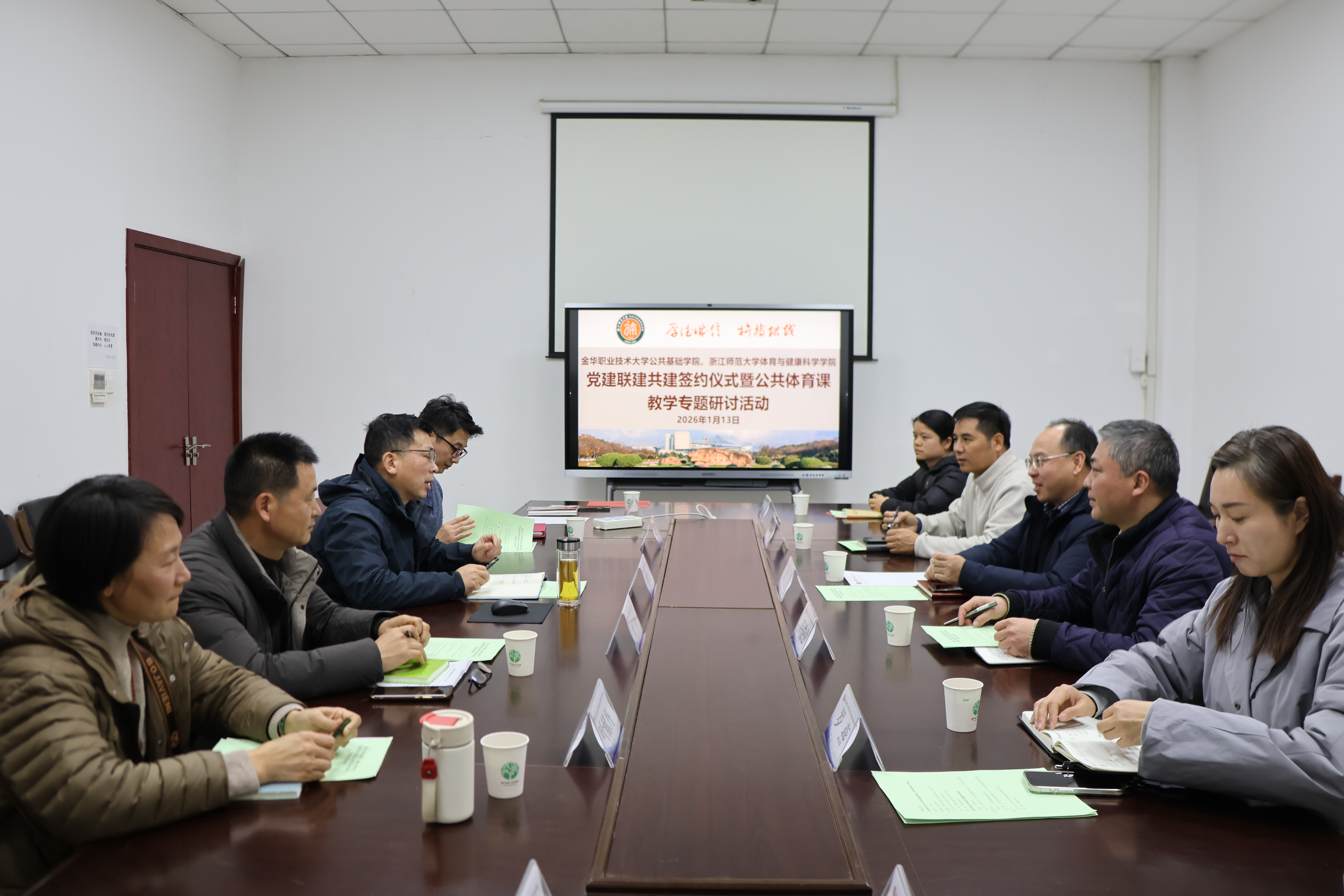为深化校际合作,推动职业本科公共体育课程改革创新,1月13日,金职大公共基础学院与浙师大体育与健康科学学院开展党建联建暨公共体育课程教学交流活动。双方学院相关领导、支部书记、组织员、教师党员代表参会。