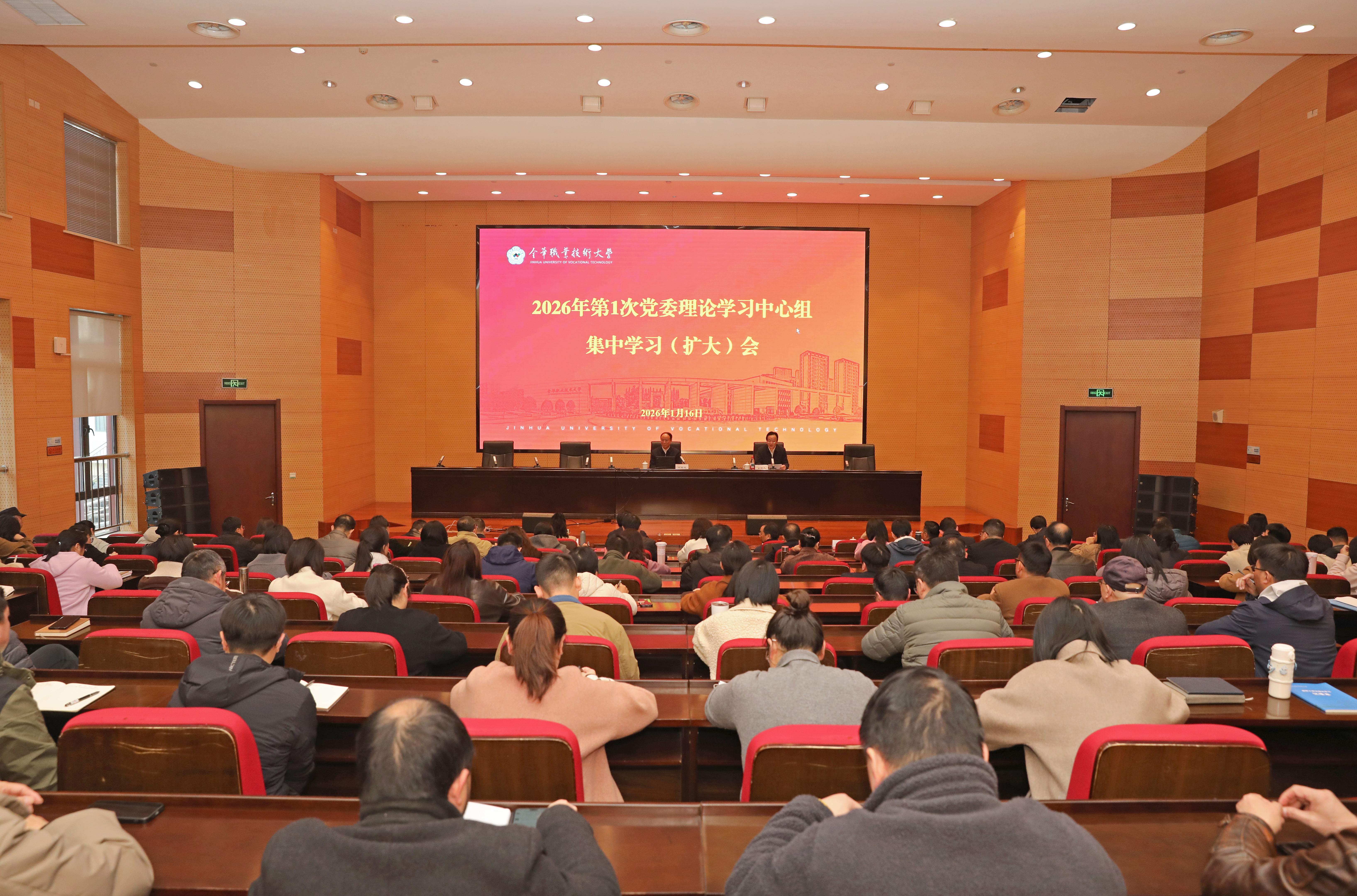 1月16日下午,金职大党委理论学习中心组召开集中学习(扩大)会,邀请省委政法委原副书记,省检察院原党组副书记、常务副检察长,省政府咨询委委员、省法学会副会长刘树枝作《防范化解重大风险 全力维护安全稳定》专题辅导报告。校党委书记王振洪主持会议,校党政领导班子成员参加学习。