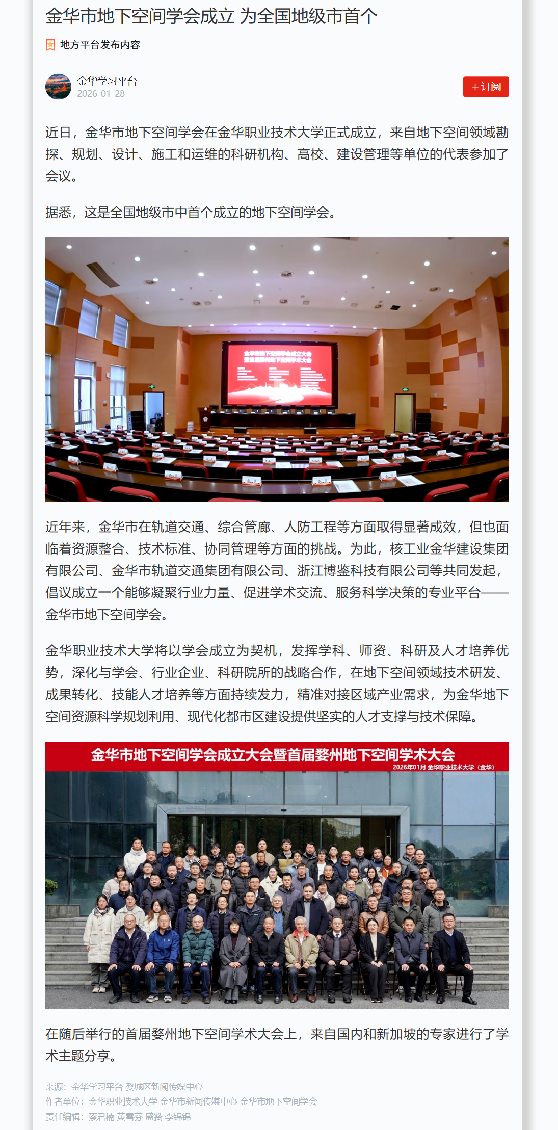 学习强国 金华学习平台:金华市地下空间学会成立 为全国地级市首个