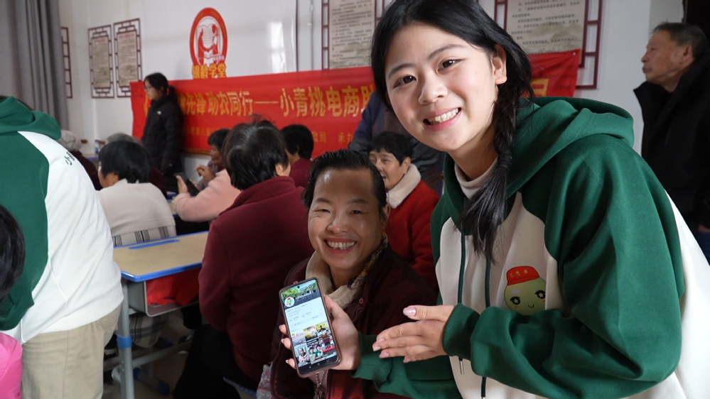而在一旁,小青桃电商服务队的队员们则化身“一对一智能辅导员”。他们蹲在老人身边,手指轻轻划过屏幕:“阿姨,点这里登录”“爷爷,这个按钮是拍视频”。从微信登录到抖音发布,每一个看似简单的步骤背后,都是队员们一遍又一遍的耐心引导。