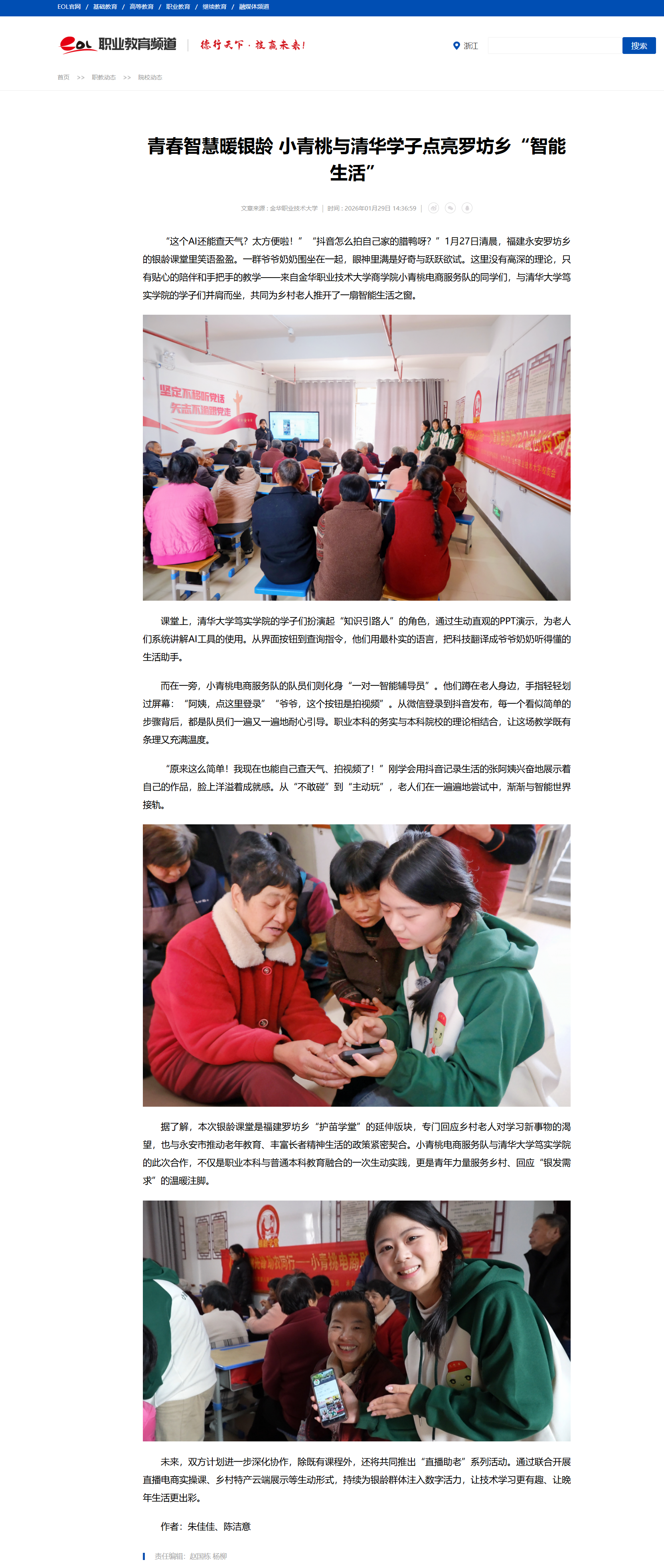 中国教育在线:青春智慧暖银龄 小青桃与清华学子点亮罗坊乡“智能生活”