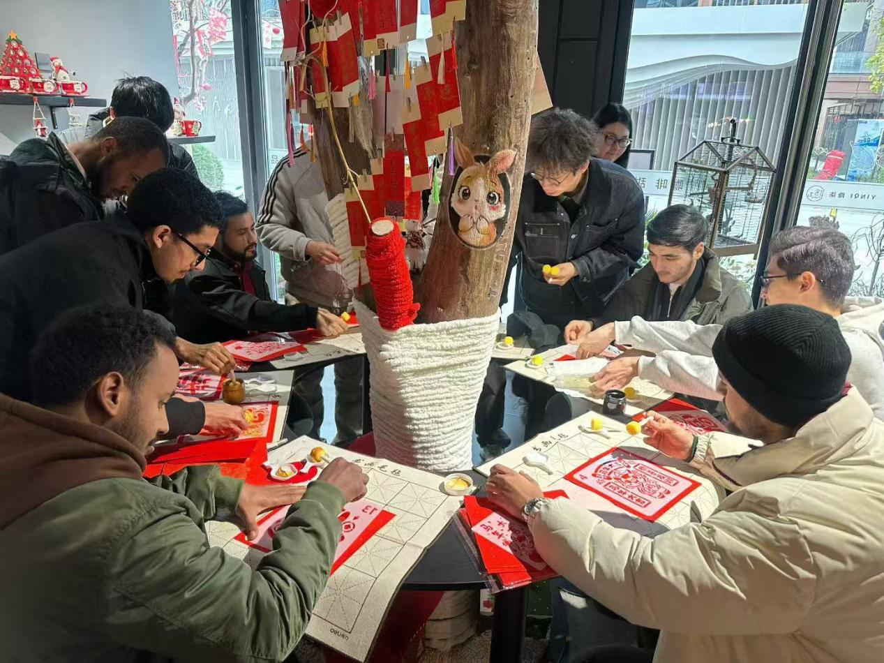 为迎接农历新春佳节,让外籍师生感受中华传统节日魅力,1月29日,学校开展了“马跃新春・品味中国年”文化体验活动。副校长陈海荣、国际合作与交流处的老师们与外籍师生欢聚一堂,在欢声笑语中共叙情谊、共迎新春。