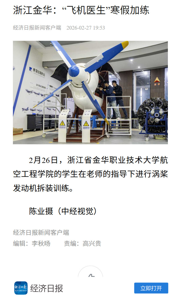 经济日报新闻客户端:浙江金华:“飞机医生”寒假加练