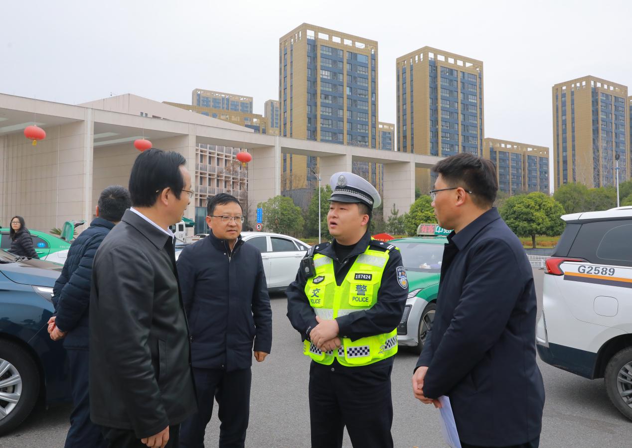 在学校南门,针对开学返校人流车流集中、通行压力增大的情况,王振洪强调,要把校园交通与出入口安全作为开学首道防线,科学增配值守力量,优化人车分流与通行引导,以技防赋能人防,实现校园交通安全高效、秩序井然,为学生安全返校保驾护航。