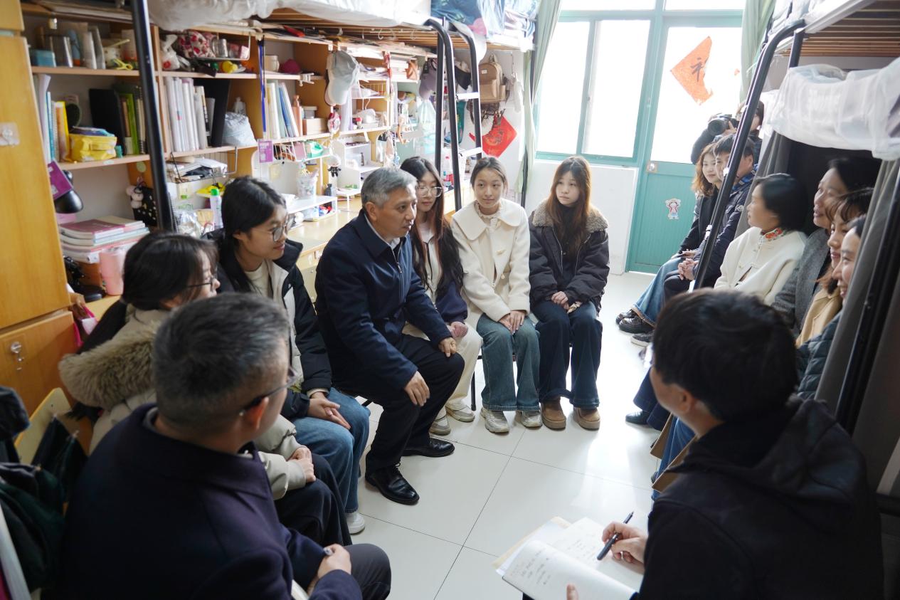 在红砖家园学生公寓,王振洪走访学生寝室并与同学们亲切交流,细致询问返校情况和学期计划,鼓励同学们收心归位、专注学业、强健体魄,以饱满精神投入新学期学习生活。检查调研中,王振洪对各学院开学工作提出明确要求:一要全面摸排师生返校情况,做到底数清、情况明、全覆盖;二要抓实抓细教学准备工作,全面排查课程安排、设备保障等情况,保障教学有序推进;三要从严抓好校园消防安全,紧盯实验室、寝室等重点场所常态化检查,防范各类隐患;四要密切关注学生身心健康,有效提供支持保障,把以生为本落到实处;五要充分落实党风廉政建设,筑牢思想防线,营造风清气正育人环境。