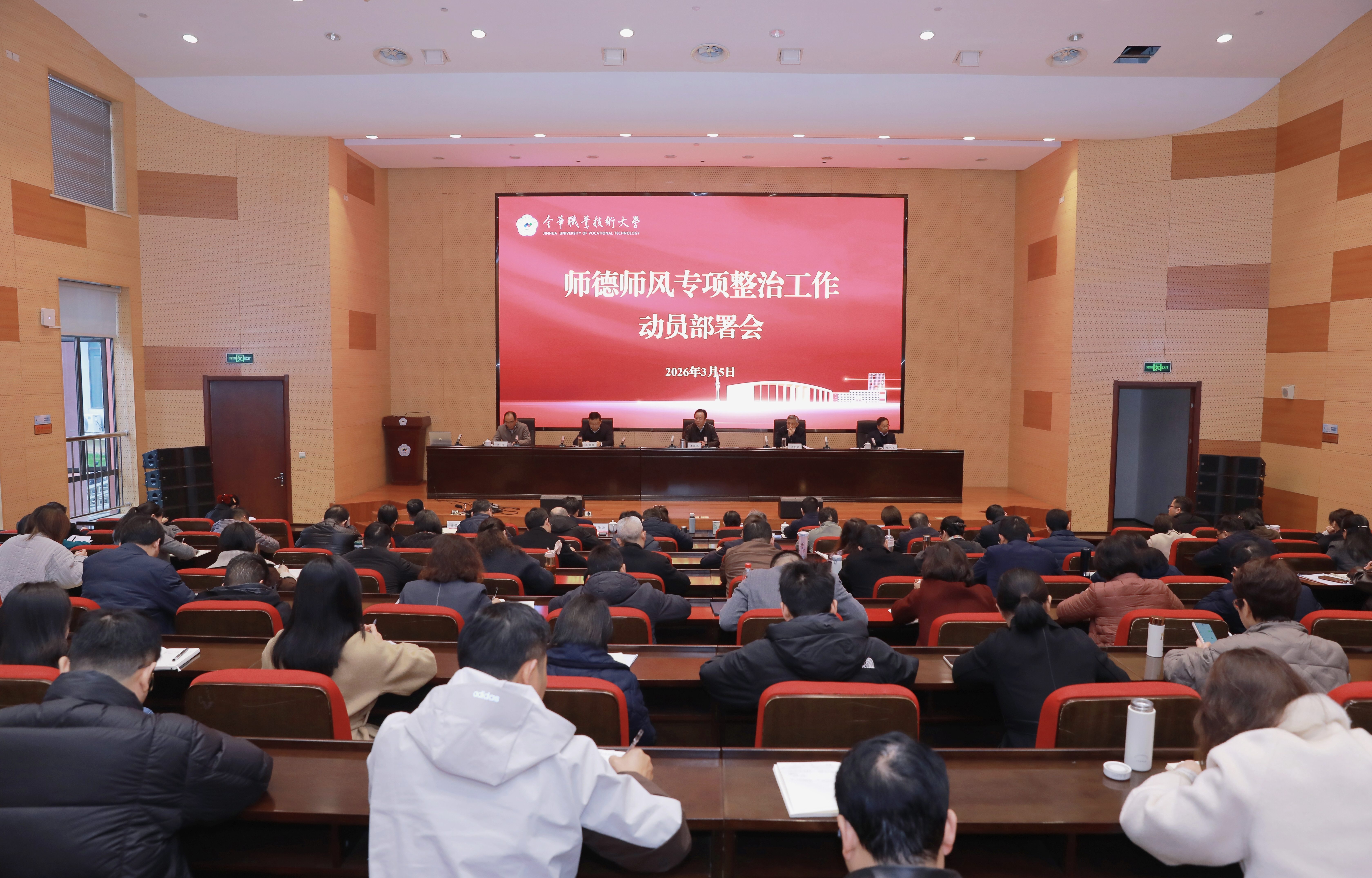 35日下午,金华职业技术大学召开师德师风专项整治工作动员部署会。党委书记王振洪主持会议并讲话,学校领导班子成员、中层干部(含党委委员)以及教师工作部相关人员参加会议。