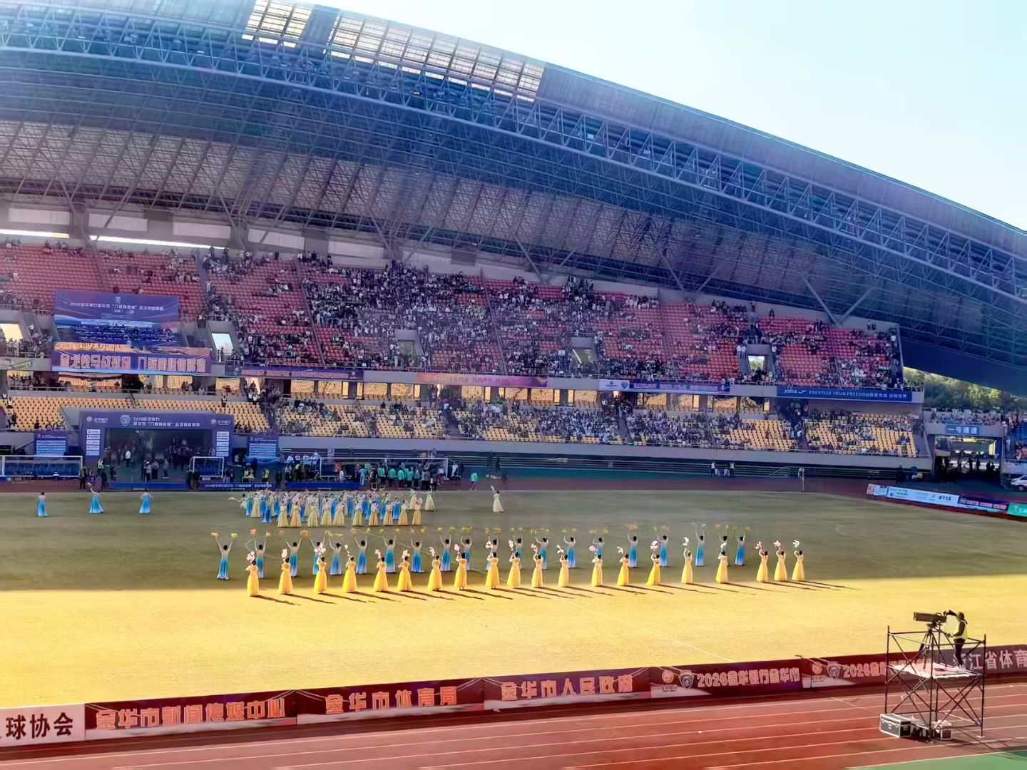 3月14日,金华职业技术大学师范学院舞蹈团应金华市体育局、金东区文化馆邀请,参加金华市“八婺同心杯”足球超级联赛终场表演。
