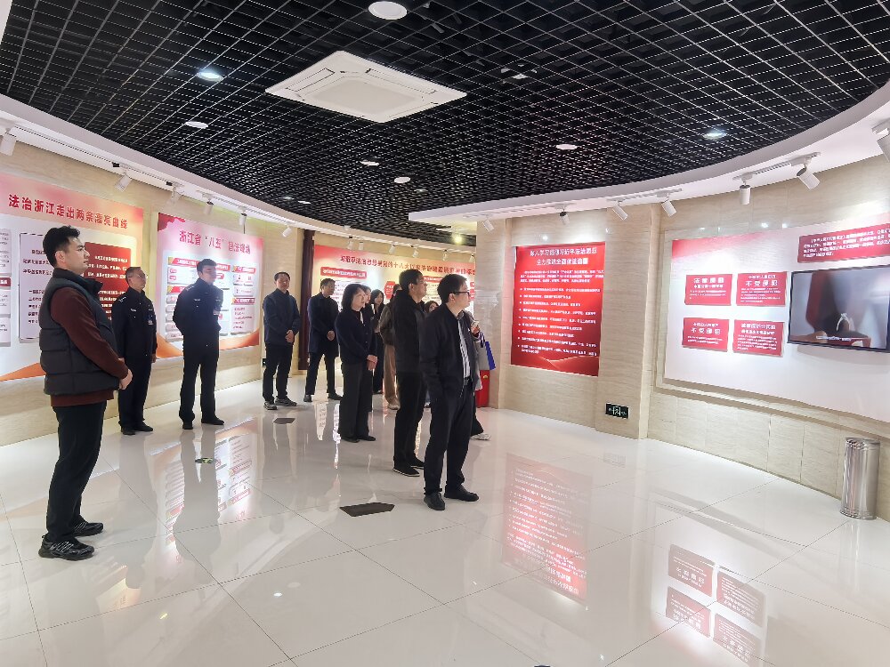 在监狱干警的引导下,大家依次参观了基地内的各大专题展区,并现场实时视频观看了监舍、劳动车间、教育场景,直观感受自由的珍贵和法律的威严。随后,资产处一行参观了金华监狱内的“浙中廉洁法制教育基地”