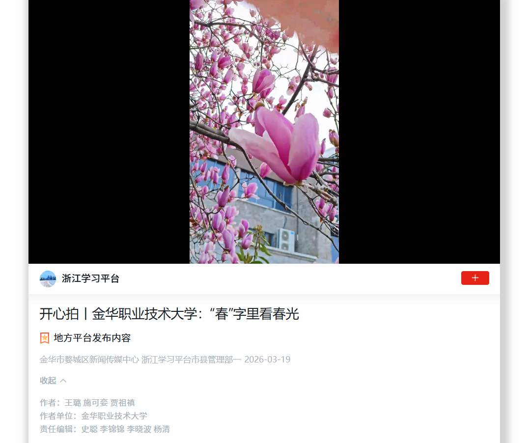学习强国 浙江学习平台:开心拍丨金华职业技术大学:“春”字里看春光