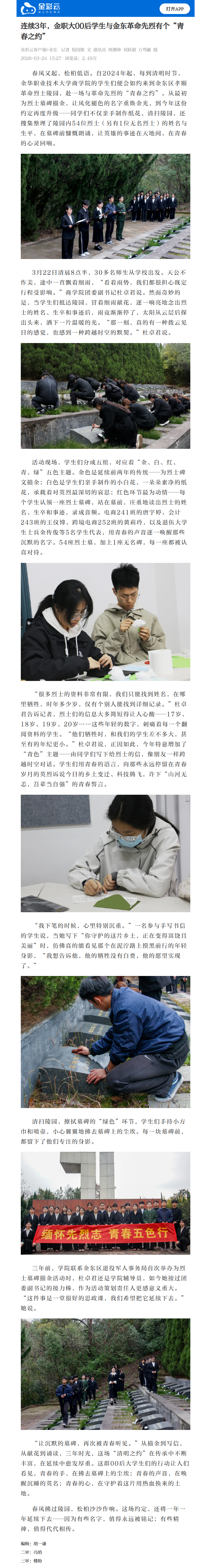 金彩云客户端:连续3年,金职大00后学生与金东革命先烈有个“青春之约”