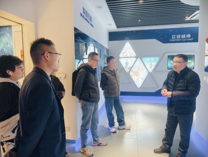 活动当日下午 3 时,校友们在胡俊帝及企业团队的陪同讲解下,参观了企业数字化成果展厅、研发中心等场所,详细了解企业发展历程、核心业务与技术成果,从校友的创业实践中汲取成长经验。
