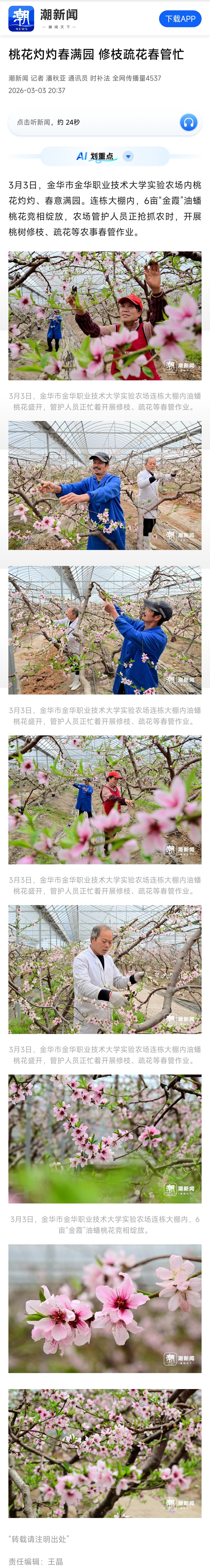潮新闻:桃花灼灼春满园 修枝疏花春管忙