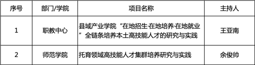 近日,根据《浙江省教育厅办公室关于组织2025年高等职业教育和高校继续教育教学改革项目申报工作的通知》精神,经学校自主申报、省级专家严格评审等程序,2025年浙江省高等职业教育和高校继续教育教学改革重点项目拟立项名单正式公布。学校成功获批高等职业教育教学改革重点项目2项、高校继续教育教学改革重点项目1项,立项总数位居全省前列。