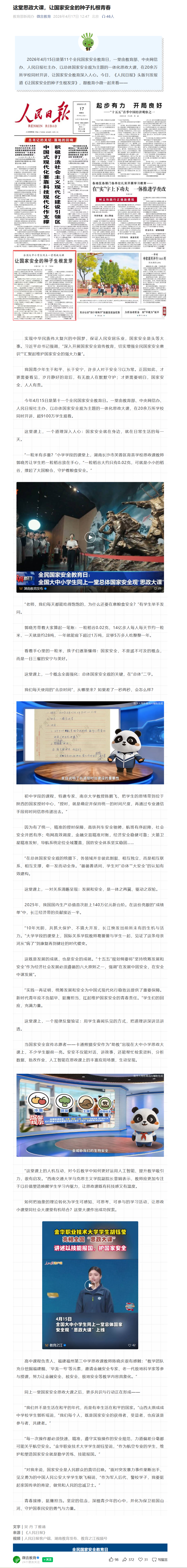 微言教育:这堂思政大课,让国家安全的种子扎根青春