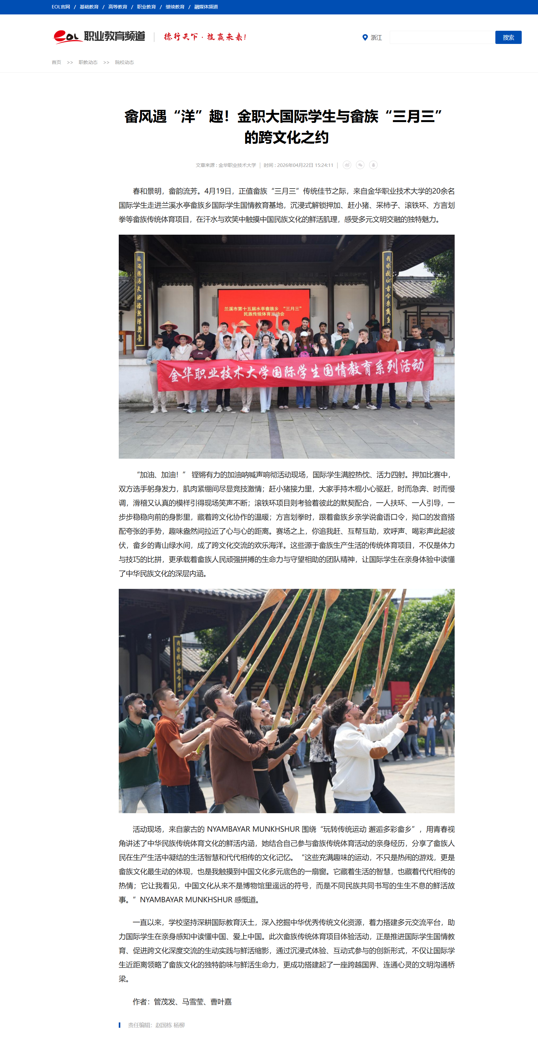 中国教育在线:畲风遇“洋”趣!金职大国际学生与畲族“三月三”的跨文化之约